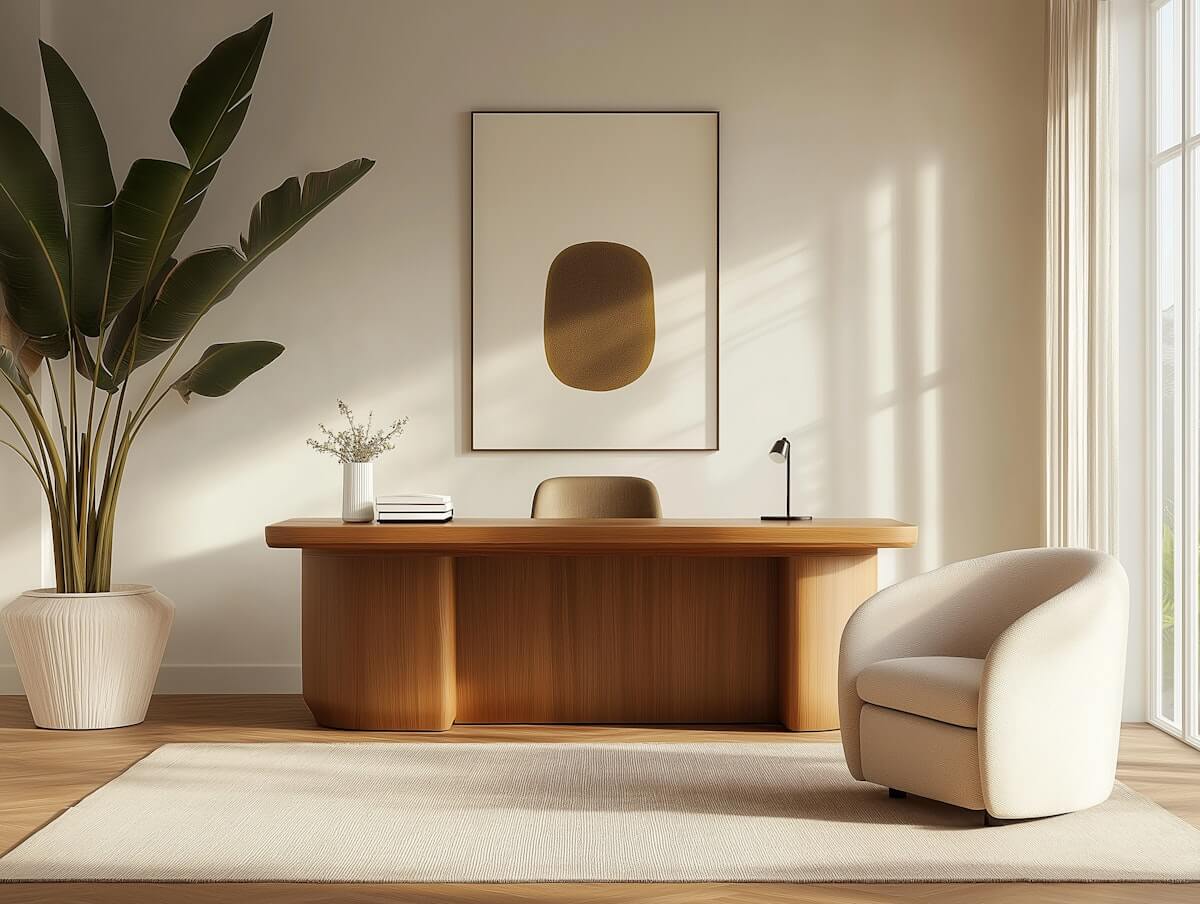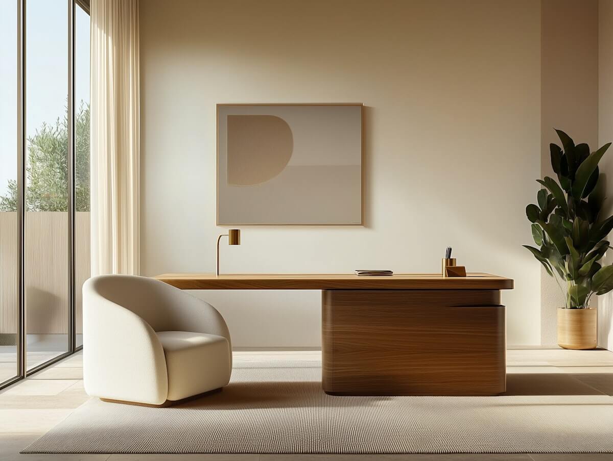 A sleek and spacious office desk designed for productivity and style. Crafted for both work and creativity, it offers a modern, minimalist look.